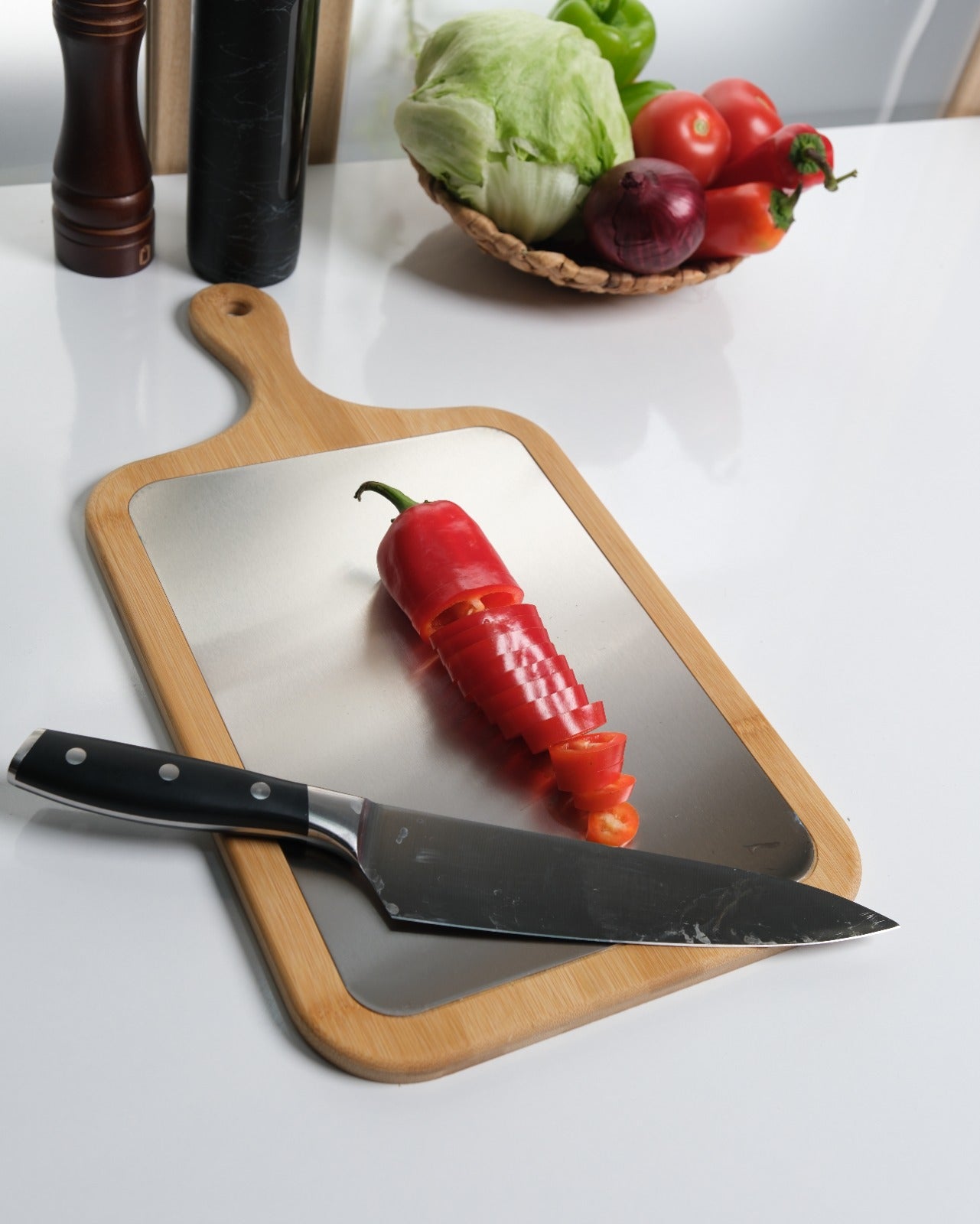 Paslanmaz Çelik Yüzeyli Bambu Kesme Tahtası – Saplı & Sapsız Modeller